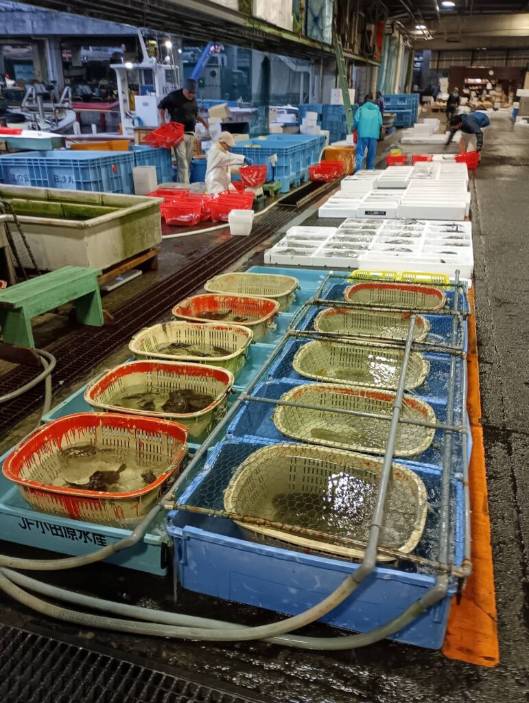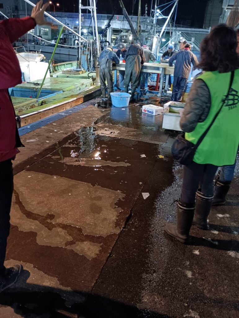漁港内のセリは一般の方は立ち入りできませんが、ツアー申込者は特別に見学OKだそうです。ガイドさん付きで面白い体験ができました。早朝5時15分に漁港集合です。