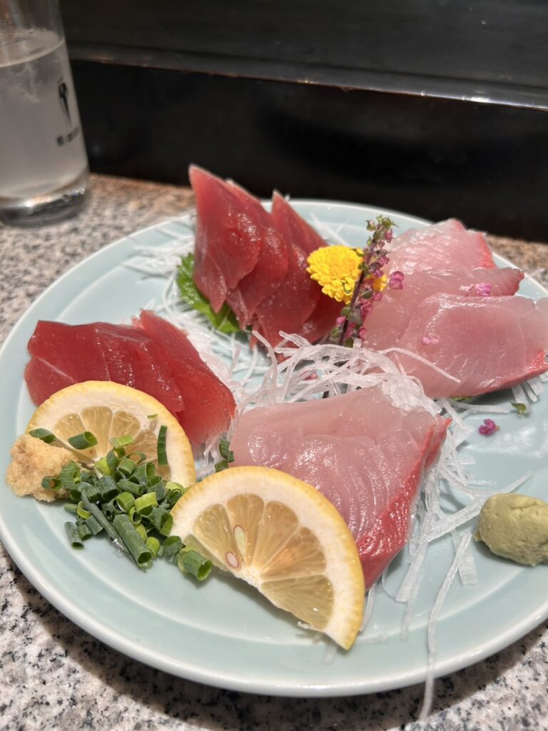 帰宅前に小田原のお気に入りのお店「うおがし」で、かつおとかんぱちのお刺身を堪能してきました。